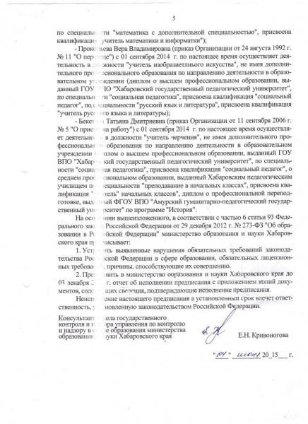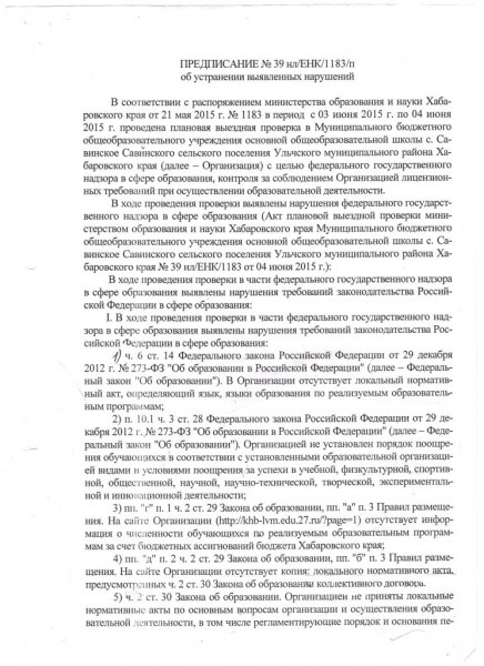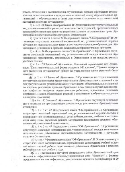 Предписания органов, осуществляющих государственный контроль (надзор) в сфере образования, отчеты об исполнении таких предписаний (при наличии)